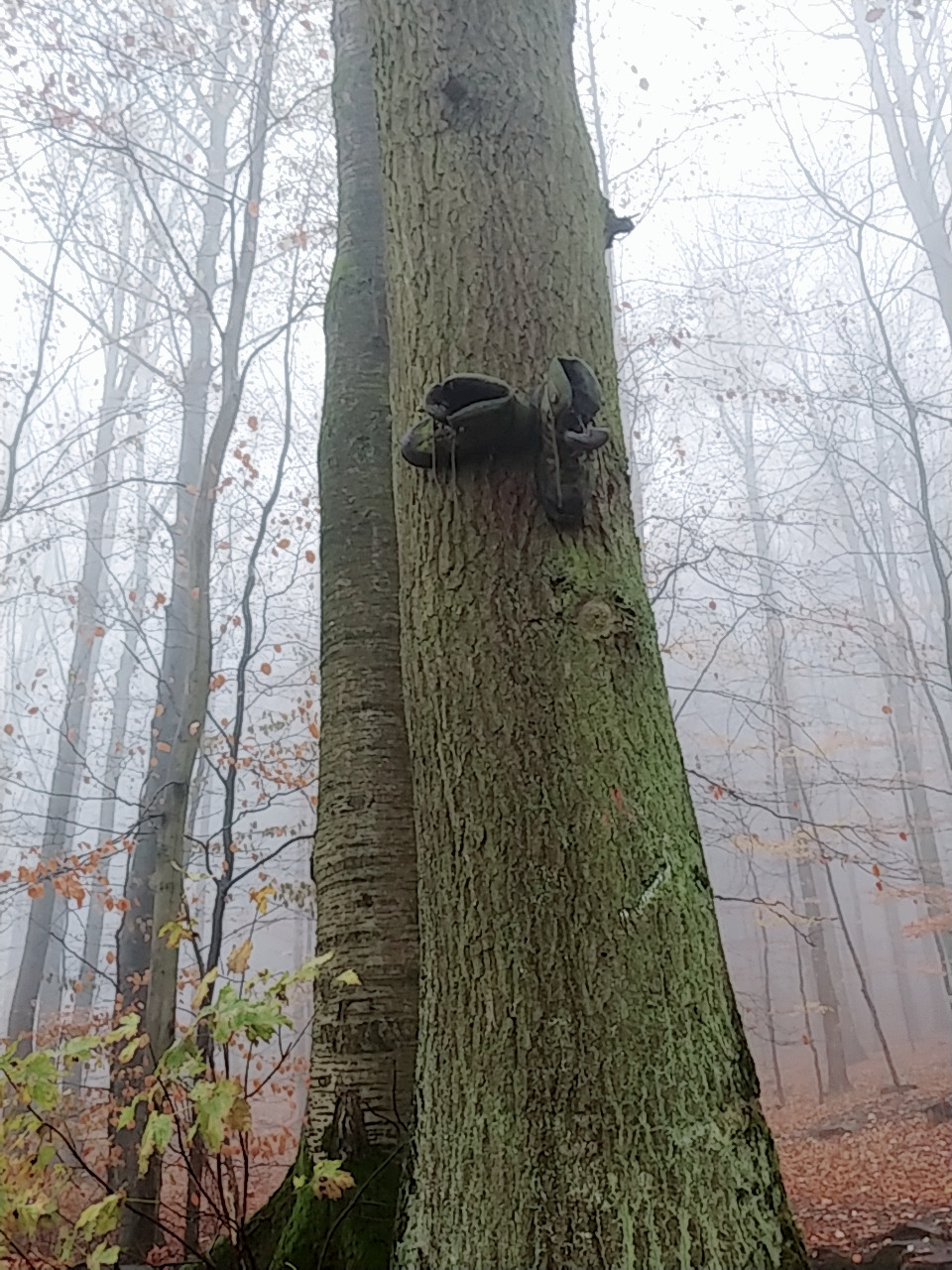 나무 위에 신발 한쌍이 매달려 있는 것을 보았다. 꽤 높은 곳에 이정표인 양 산행하는 이들을 지켜보고 있다. 아이작 세비스 싱어의 '바르샤바로 간 슐레밀'이라는 책이 떠올랐다. 게으른 슐레밀은 자신이 살던 켈름을 떠나 위대한 도시 바르샤바로 가고 싶어 했다. 게으르고 능력도 없어 아내에게 늘 잔소리만 듣는 현실을 피하고 싶었던 것이다. 어느 날 그는 자신을 반겨 줄 새로운 세상 바르샤바를 향해 길을 나선다. 한나절을 걷던 슐레밀은 장화를 벗어 가던 방향으로 장화 코를 향해 놓고 낮잠을 잔다. 이를 지켜보던 대장장이가 그의 장화 코를 오던 방향으로 돌려놓는다. 장화 코만 보고 길을 가던 슐레밀은 다시 켈름으로 돌아오게 된다.