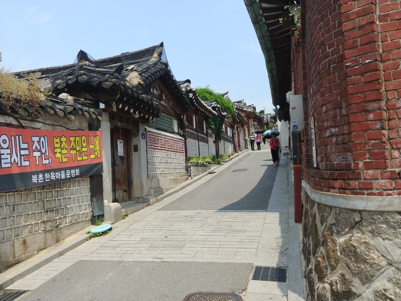 오랜만에 고향 친구를 만나 서울 거리를 돌아보기로 했다. 우선 북촌 한옥마을로 갔다. 이른 시각이라 사람들도 많지 않아 꼼꼼하고 여유 있게 관람할 수 있었다. 기와가 맞닿을 듯이 빼곡하게 들어 선 한옥 거리는 친구와 함께 있어서 그런지 고향에 온 것처럼 평화롭다. 한복을 입은 외국인들이 눈에 띄기 시작했다. 사진을 찍어달라고 해서 기와의 곡선을 살려 한국의 아름다움을 여러 장 넣어주었다. 주민들의 사생활을 보장해 달라는 현수막을 보며 그들의 고통이 얼마나 컸을지 안타까워 침묵관광을 했다.