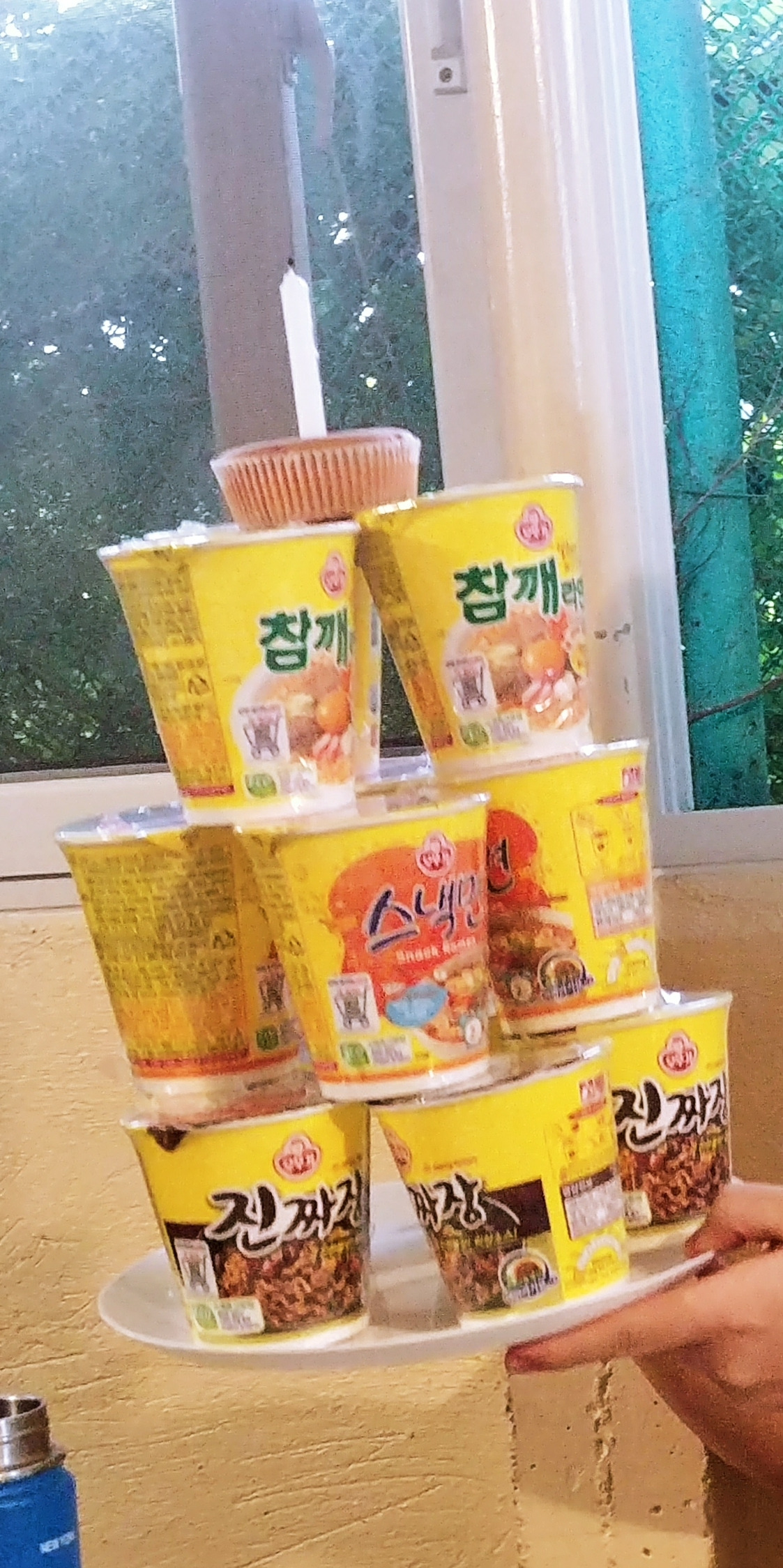 성민이의 친구들은 기숙사 자체적으로 열었던 깐띤(작은 매점)에 남아 있는 몬데 빵 하나와 컵라면 12개로 케이크를 만들었다.