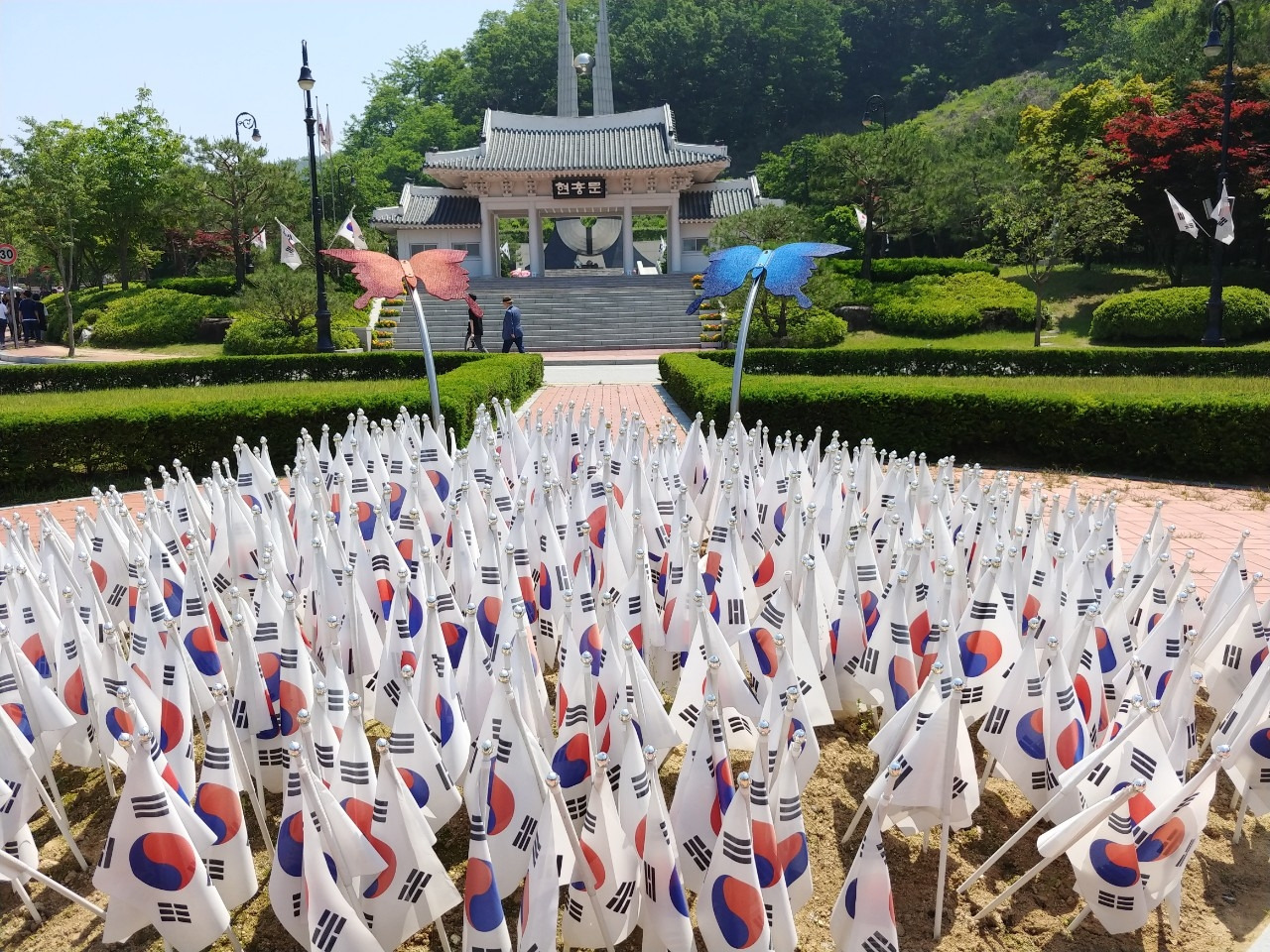 다행(?)인가? 고속도로가 비교적 한산해 생각보다 일찍 도착했다. 장병들의 호위를 받으며 넓은 곳에 주차를하고 아버지 묘소로 향하는데 '하늘로 보내는 편지'를 쓰는 곳이 있었다.
