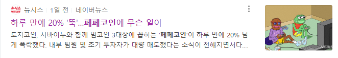 페페코인 내부 팀원 및 초기 투자자가 대량 매도했다는 소식이 전해지면서 하루 만에 20% 넘게 폭락했다.