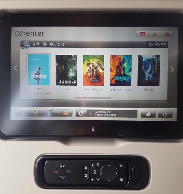 좌석 스크린에는 별별게 다있었다. 너무 오랜만에 타는 비행기라 그런지, 최신영화들도 많고 최신 드라마 다큐멘터리들도 있었다. 최신이라고 해봤자 그래도 1-2달은 된 것들이지만. 내 대각선 앞으로 2번째 좌석에 앉은 아주머니는 도봉순 드라마를 거의 정주행하다시피 하더라. 나는 마침 내가 보고싶었던 ‘블레이드 러너’가 목록에 있어서 반가워서 보려고 했다. 그러나 기내에서 심오한 영화는 그닥 집중이 되지않는다. 다키스트 아워도 있었던 것 같다. 보고싶었던 영화들을 접어두고, 보기 편한 영화를 켰다.