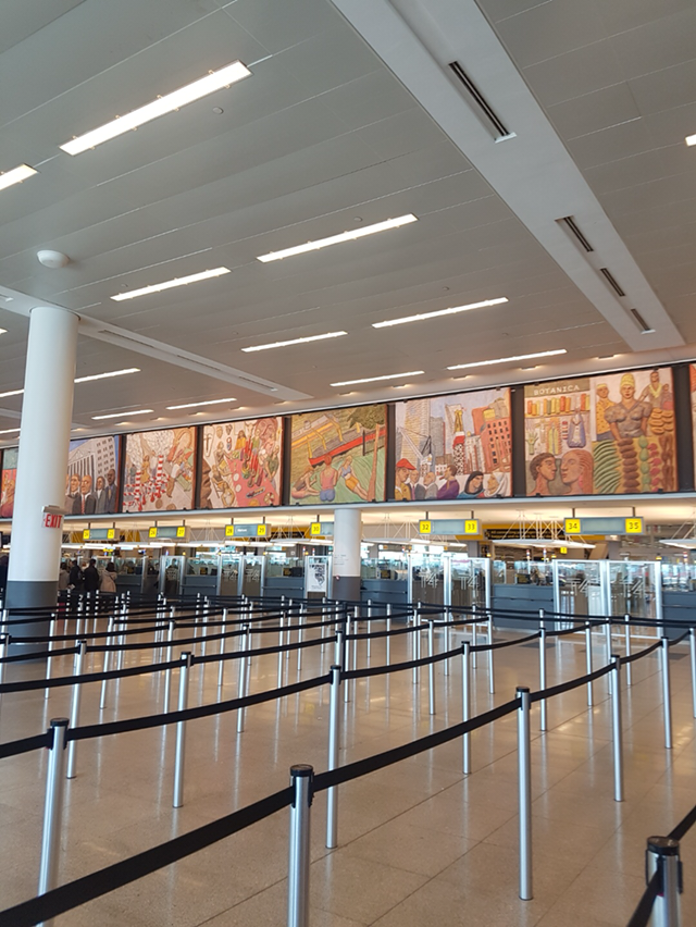 입국 줄은 매우 길었다. 까다롭다기보다는 오래걸렸다. 도착해서 30분 이상은 기다렸던 것 같다. 사람도 많고 줄도 많아서인지 공항 보안직원은 매우 예민해보였다. 수많은 외국 사람들이 말도 잘 안듣고 그래서인가, 그는 친절과는 거리가 멀어보였다. 나는 따라가는 줄대로 착실히 따라가서, 여행왔냐, 어디가냐, 며칠있냐 등 한 3가지 질문정도를 받고 통과했다. 엄지, 검지를 찍고 사진도 한번 찍었나 그리고는 짐을 찾으러갔다. 짐이 좀 많아서, 캐리어를 담는 카트 하나 가져오려고 하는데 카트도 돈내고 써야 했다. 자세히 못봐서 기억이 잘 안나지만 한 $4정도 했던 것 같다.