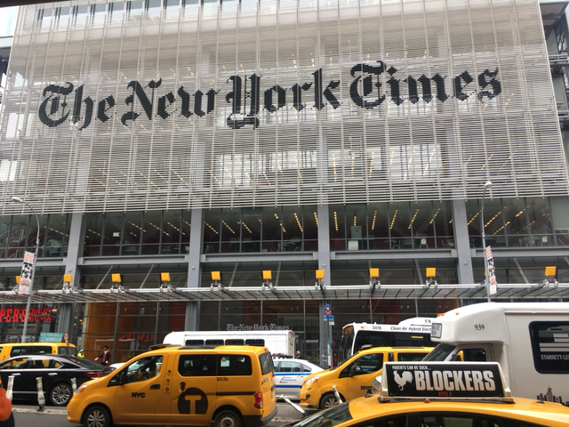 버스는 안내방송도 잘나오고 내리기 전에 전광판에 알림도 뜬다. 머리 위에 빨간 스탑버튼을 누르면 내릴 수 있다. 내가 좀전에 내렸던 port authority bus terminal은 워낙 대부분이 거기서 다 내리기때문에 벨을 누를 필요는 없었다. 아무튼 그렇게 내려서 사람들을 따라가다 나온 곳이 아까 처음에 말했던 뉴욕타임즈 건물이었다. 마침 내가 지나갈때 NBC에서 나온 스탭들과 리포터가 방송을 준비중이었다.