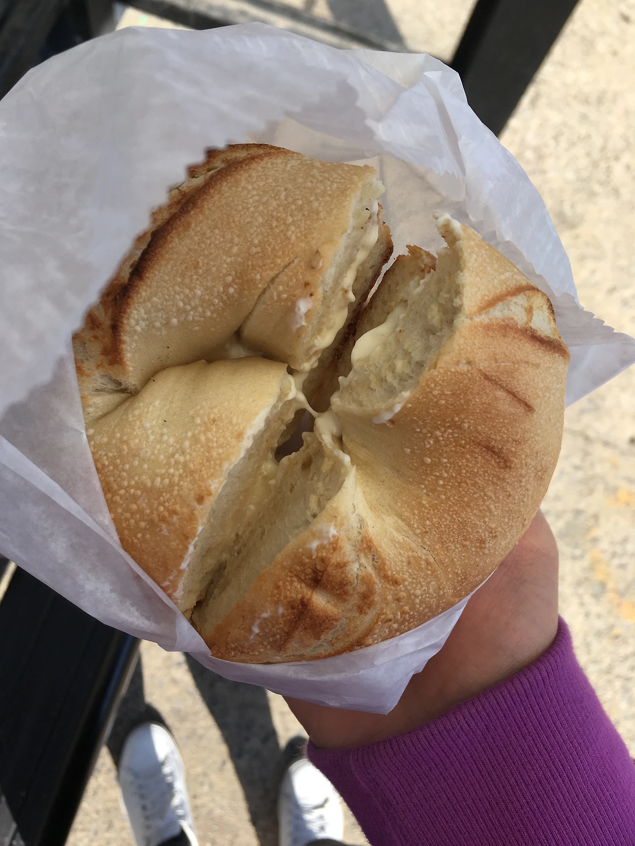 딱히 유명한 곳은 아닌 것 같은데, 뭔가 포스가 느껴지는 로컬 맛집 같다. 그 근거는 1. 아침일찍부터 베이글을 사러 들르는 차들이 늘 붐빈다. 2. 직원들이 친절하지는 않다. 3. 짧은 오픈 시간. 새벽 5시에 문을 열어서 오후 2시에 문을 닫는다. 뭐 그러하다. 저녁에 천천히 가봐야지 했던 날 가게 팸플릿을 읽어보고는 아, 아침 일찍 가야겠구나 했다. 처음엔 온리 캐시기 때문에 동전내기가 어려워서 팸플릿에 적힌 가격대로 동전을 준비해 손에 꼭 쥐어 가고 그랬다. bagle with creamcheese $2.11, 막상 가보니 총 $2.25라고 해서 당황했다. 결국 소중하게 준비했던 11센트를 못쓰고 $2와 quarter 하나를 내고 사 먹었다. 그리고 결심했다. 이 가게 베이글 종류 x 크림치즈 종류 조합을 다 먹어보겠다고.