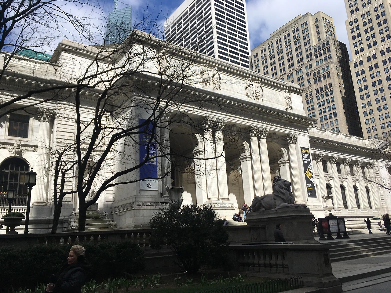 먹으면서 지도를 보는데 앞쪽에 서점이 있길래, (쇼핑을 해야 한다는 목적은 잊은 지 오래...) 서점에 들러야겠다고 생각하는 찰나, 뒤에 큰 건물은 무엇인가 또 찾아보다가 아니 뉴욕 공립도서관이 아닌가 ㅇ_ㅇ...? 행복하다. 나에게는 이름만 들어도 행복해지는 것이 서점과 도서관이다. 역시 참새는 방앗간을 지나치지 못한다고 (나에게는 방앗간이 서점과 도서관, 물론 빵집도) 얼른 마저 베이글을 입에 욱여넣고 도서관으로 향했다. 브라이언트 파크는 도서관에 뒤편에 자리해있고, 정문은 앞쪽으로 가야 있다. 역시나 많은 관광객들이 사진을 찍고 있었고, 도서관이라기보다는 관광명소에 가까워 보였다.