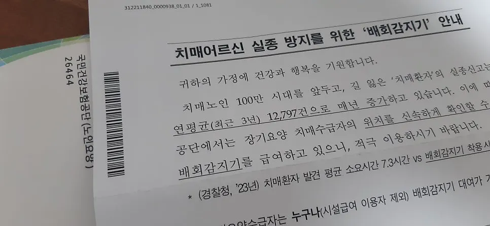 건강보험공단에서는 '치매 어르신' 관련 안내문이 발송되어 왔다.