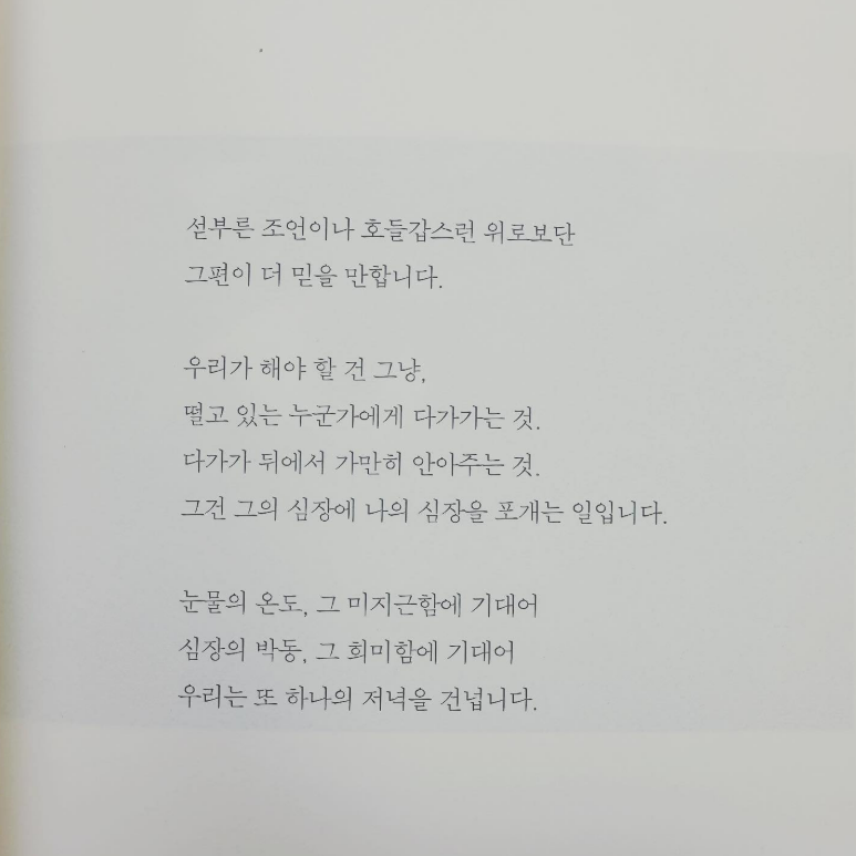 어떨 때는 따뜻함도 너무 직접적일 때가 있으니까요.