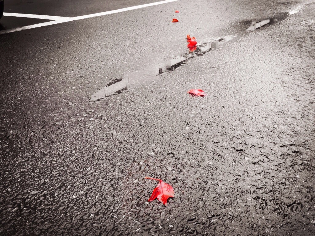 비에 물든 아스팔트 위로, 선명한 발자국을 남기며...