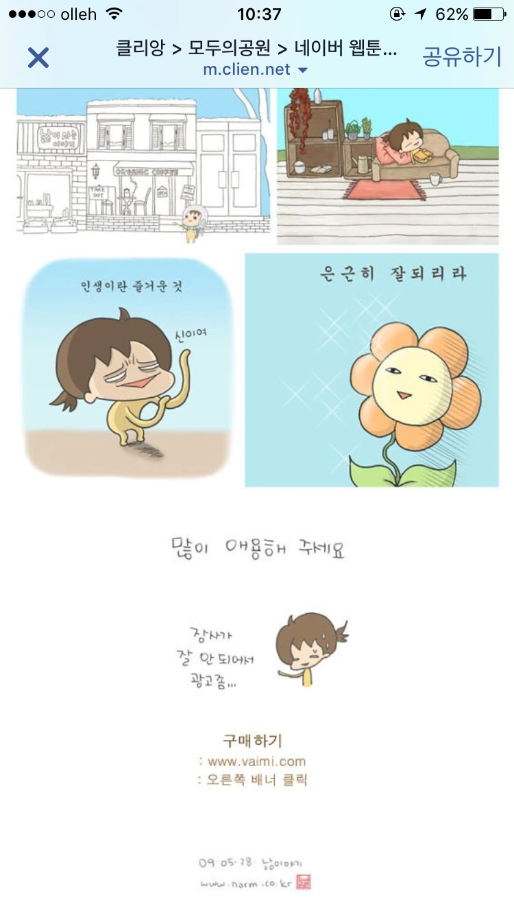 즉, 저 광고 웹툰은 네이버에서 캡처한 게 아니라 '서나래 작가 개인 홈페이지'에서 캡처했다'는 뜻이다.