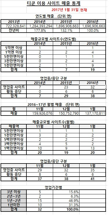 현재 티쿤을 이용해서 일본에 진출한 사이트는 총 41개로 이중 35개가 영업을 하고 있습니다.