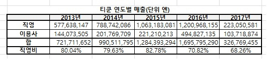티쿤은 플랫폼 운영이 본업이지만 직영으로 작년에 120억 원 매출을 올렸습니다.