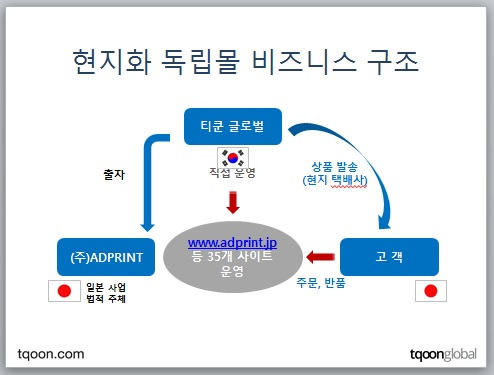 티쿤 이용 사이트의 운영자는 한국 (주)티쿤글로벌이 100% 지분을 갖고 있는 일본의 (주)아도프린트입니다. 일본 법인(주)아도프린트가 36개 사이트를 운영하고 있습니다.
