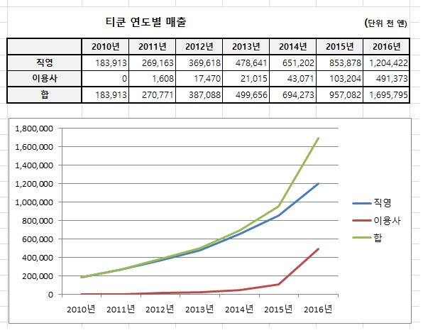 이용사가 늘어나서 매출이 오르기도 하지만 티쿤글로벌 직영 사업만 봐도 매출은 계속 올라갑니다.