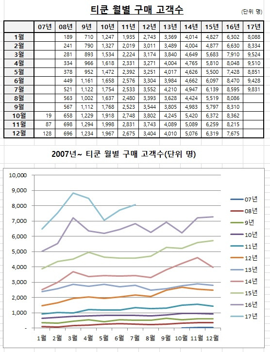 티쿤은 월평균 9,500명 구매고객이면 월 18~20억 원 매출을 올린다.
