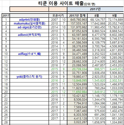 지금까지 티쿤을 이용해서 해외직판한 사이트는 52개입니다.