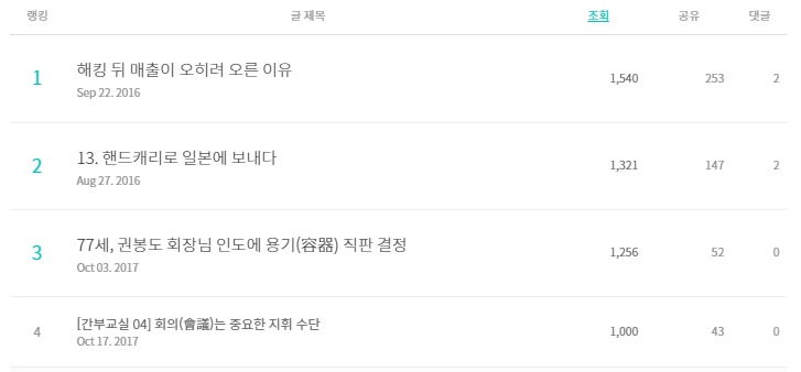 이런 류 글이 1천 회를 넘기는 정말 힘든데요.