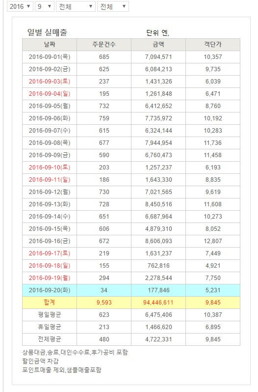 며칠 지나지 않았고, 19일인 목요일은 경로의 날, 22일(목)은 추분으로 일본은 휴일입니다. 이번 주는 일본이 실버주간이라고 해서 정상 영업 주간은 아닙니다. 매출 추이를 정확히 알 수는 없습니다. 다만, 지난 9년 간 경험으로 봐서는 매출이 크게 떨어지지 않은 것 같습니다. 고객과 티쿤 이용사에게 미안하면서도 감사한 일입니다.
