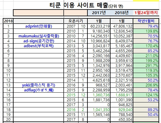 1월24일 현재 작년 1월 매출을 이미 넘은 사이트가 9개입니다.