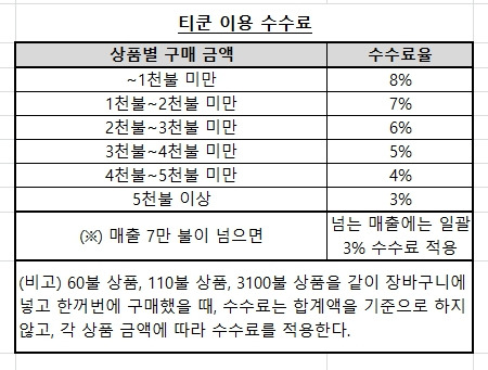 티쿤은 이용사들이 해외직판을 잘할 수 있게 도우면서 아래와 같이 수수료를 받습니다.