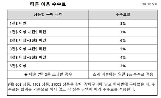 티쿤플랫폼 이용 수수료 : 인터넷 쇼핑몰 매출 대비 3% ~ 8 %