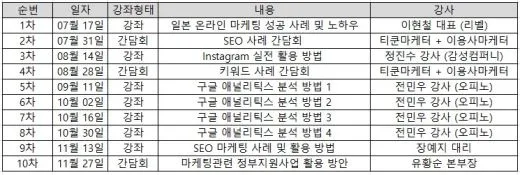 강의보다는 상호간에 편하게 이야기할 수 있도록 간담회로 진행하며, 이번 간담회에서는 SEO관련 교육을 진행하지 않습니다.