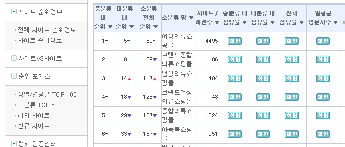 사이트 랭킹을 조사하는 랭키닷컴으로 보면, 일단 여성의류쇼핑몰만 4495개입니다. 이 4495개 사이트가 성인여성 천 몇 백만을 상대로 장사를 합니다. 클릭 한번이면 순식간에 이 전상점에서 저 전상점으로 갈 수 있습니다. 전상점이 서울에 있냐, 부산에 있냐, 대구에 있냐, 대전에 있냐 전혀 따지지 않습니다.