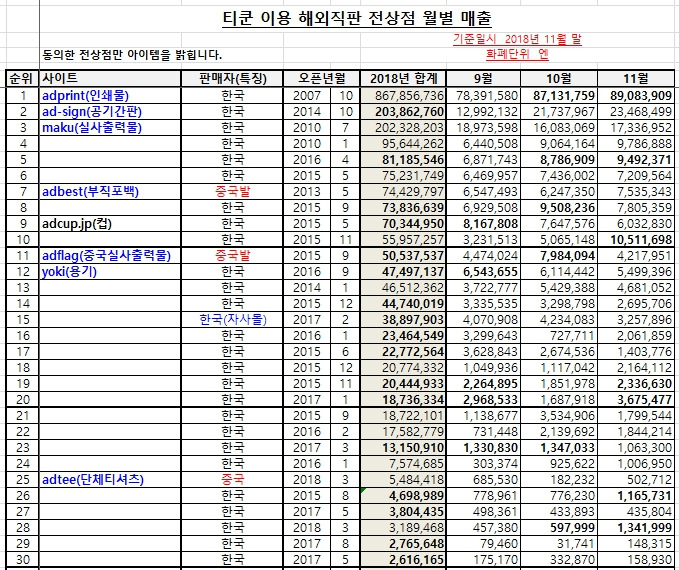 해외직판 지원 플랫폼 티쿤이 11월에 월매출 22억 7700만 원 신기록을 작성했습니다.