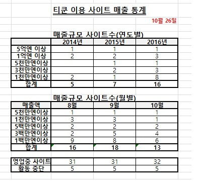 그동안 티쿤을 이용한 일본직판 사이트는 37개가 열렸고, 이중 5개가 폐점했습니다.