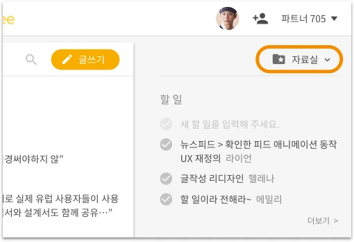 이제, '할 일 / 의사결정 / 이미지 / 파일 / 링크'를 종류별로 모아둔 자료실에서 쉽게 찾아보세요.