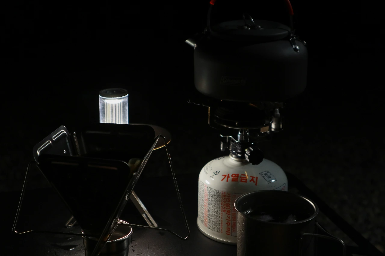 버너에 불을 붙이고 주전자에 남은 물을 다시 끓인다.