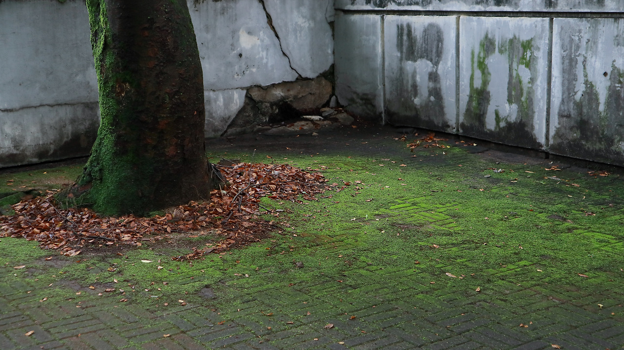 그 대신 비를 맞아 짙어진 이끼 바닥만 있을 뿐이다.