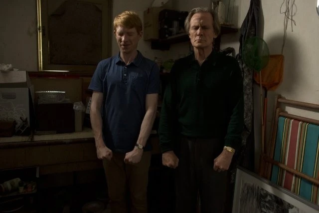 시간 여행 능력을 사용하기 위해 아버지와 함께 두 눈을 꼭 감고 주먹을 꽉 쥐는 팀 (C) Universal Pictures