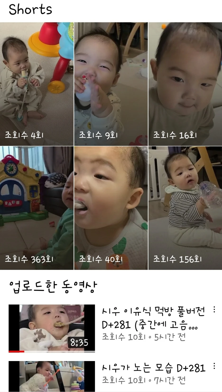 육아 글을 쓰려고 컴퓨터 책상에 앉았다. 아내와 이야기를 하면서 글을 쓸 생각이었는데 유튜브에 올린 아들의 모습을 보고 나서 쓰고자 마음먹었다. 잠시 보고 글을 쓸 생각이었는데 어느덧 영상을 1시간째 보고 있다. 어머니와 장모님이 시우를 보고 싶을 때마다 볼 수 있도록 영상을 올리고 있고 시우의 하루하루를 보여드린다는 생각으로 올리고 있다. 영상은 1분 남짓 짧은 영상들이고 편집도 없고 자막도 없다. 단순히 시우의 모습이 주를 이루기 때문에 어질러진 집이나 액면 그대로의 내 모습도 함께 나온다. 아내의 모습도 과감 없이 나오고 내가 속옷만(?) 입고 앉아있는 모습도 종종 볼 수 있다.