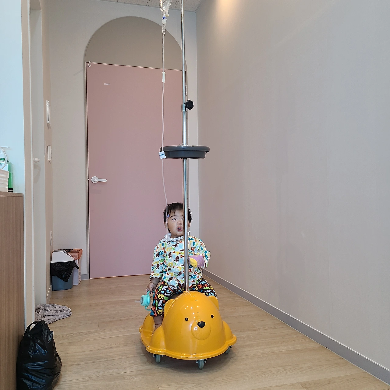 시우는 왼팔에다가 수액을 달고 있는데, 수액이 떨어지는 속도가 너무 느려 보였다. 혈관이 방향을 타서 그런 것 같았다. 수액이 들어가지 않는다고 방향을 수정해 달라고 스테이션에 가서 이야기를 했는데 나도 모르게 간호사 티를 낼 뻔했다.