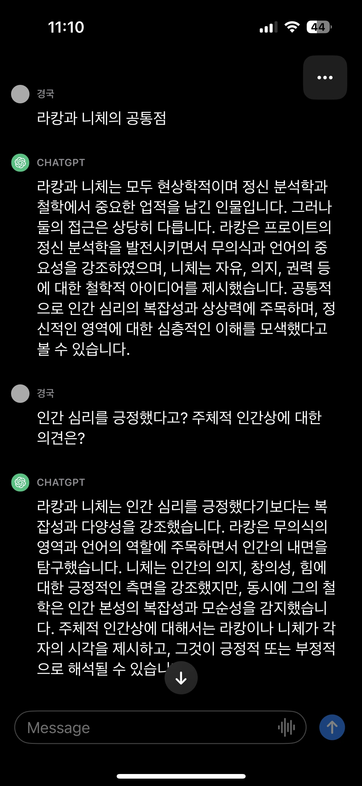 에세이를 써주고 소설의 스토리를 만들고 입력자의 요구에 맞춰서 글을 써준다. 채워주는 것이 아니라, 글을 써서 한편을 만들어 낸다. 영어로 질문을 하니 더 그럴싸한 답을 내어 놓는다. 내가 원하는 스토리를 이야기하면 플롯을 써주고 스토리라인을 스스로 잡아 나간다. 우리가 우려했던 일이 하나 둘 생기고 있다. 할리우드의 작가조합은 AI사용에 대하여 생존권을 부르짖으며 투쟁을 벌인다. 엑셀 함수도, 작곡도, 코딩과 여행 계획도 가능하다. 나는 챗 gpt에게 철학자들을 묻기도 하고 칸트에 대해서 묻기도 한다. 내가 20살 때 완독에 실패했던 순수이성비판이나 라캉의 이론에 대해서 물어보기도 한다.