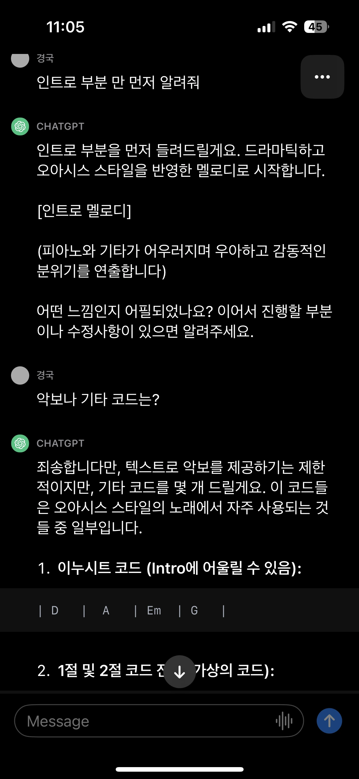 사실 기존에 있던 패턴을 나열한 것이지만, 작곡을 한 것처럼 보인다. 질문을 더 세밀하게 작성하면 풍부하고 원했던 결과를 얻을 수 있다. 특화된 AI툴이나 어플을 활용하면 창작작품을 만들어 내는 것이 어렵지 않다. 이 글을 쓰는 데 걸리는 시간의 1/10이면 더 좋은 퀄리티의 양질의 글을 얻을 수 있는 것이다.(이럴 수가!)