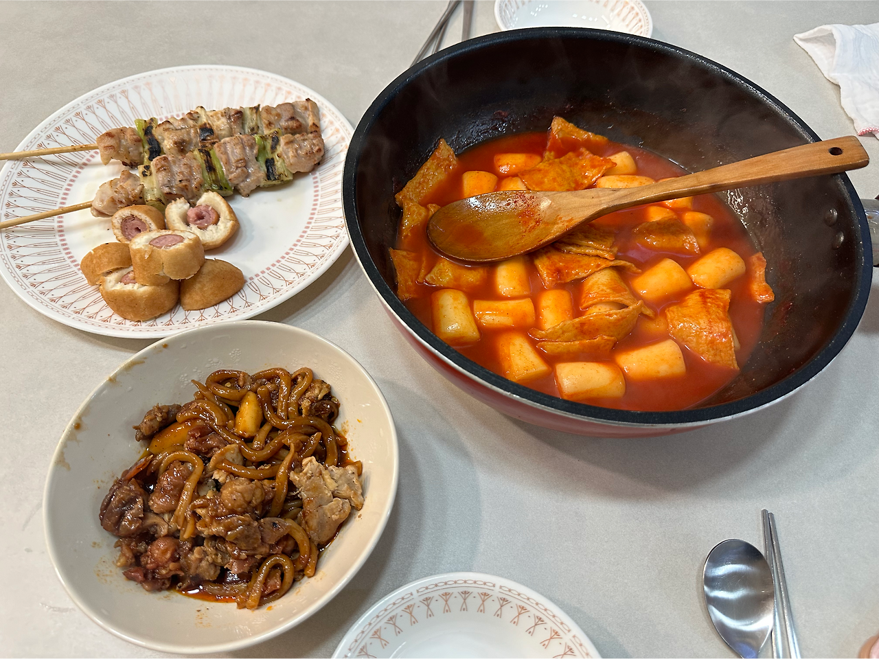 떡볶이와 닭꼬치, 어제 먹고 남은 치킨이 메뉴였다. 시켜 먹을까도 생각했지만 처음이니(?) 무리하지 않고 즐기기로 했다. 아 이게 행복이구나. 야식을 즐기는 삶. 비록 삶이 고달프고 지치더라도 야식을 먹을 수 있으니 얼마나 행복 한가. 아이들은 잠들어 있고 우리는 이렇게 이야기를 나누며 시간을 보낸다. 하루살이라고 생각하지 않는다. 하루의 남은 시간을 웃음으로 보내는 것이다.