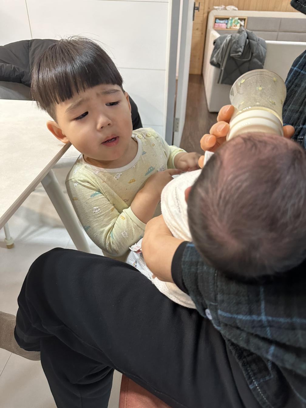 시우가 서운해하지 않도록, 엇나가지 않도록 아들과 많은 시간을 보내고 함께 하고 있다. 아무리 내가 시우에게 사랑을 쏟아도 시우는 자신이 받아왔던 관심의 변화를 몸소 느끼고 있다. 시우가 좋아하는 할머니와 할아버지가 우리 집에 방문했을 때도 시우만 보는 것이 아니었다. 동생인 지우를 들여다보며 행복한 미소를 짓는 모습을 시우는 계속 보고 있었다. 평소 같으면 자신과 이야기를 하고 함께 놀아주던 할머니가 동생 지우에게 분유를 먹이는 모습을 시우는 멀뚱히 보기도 한다.