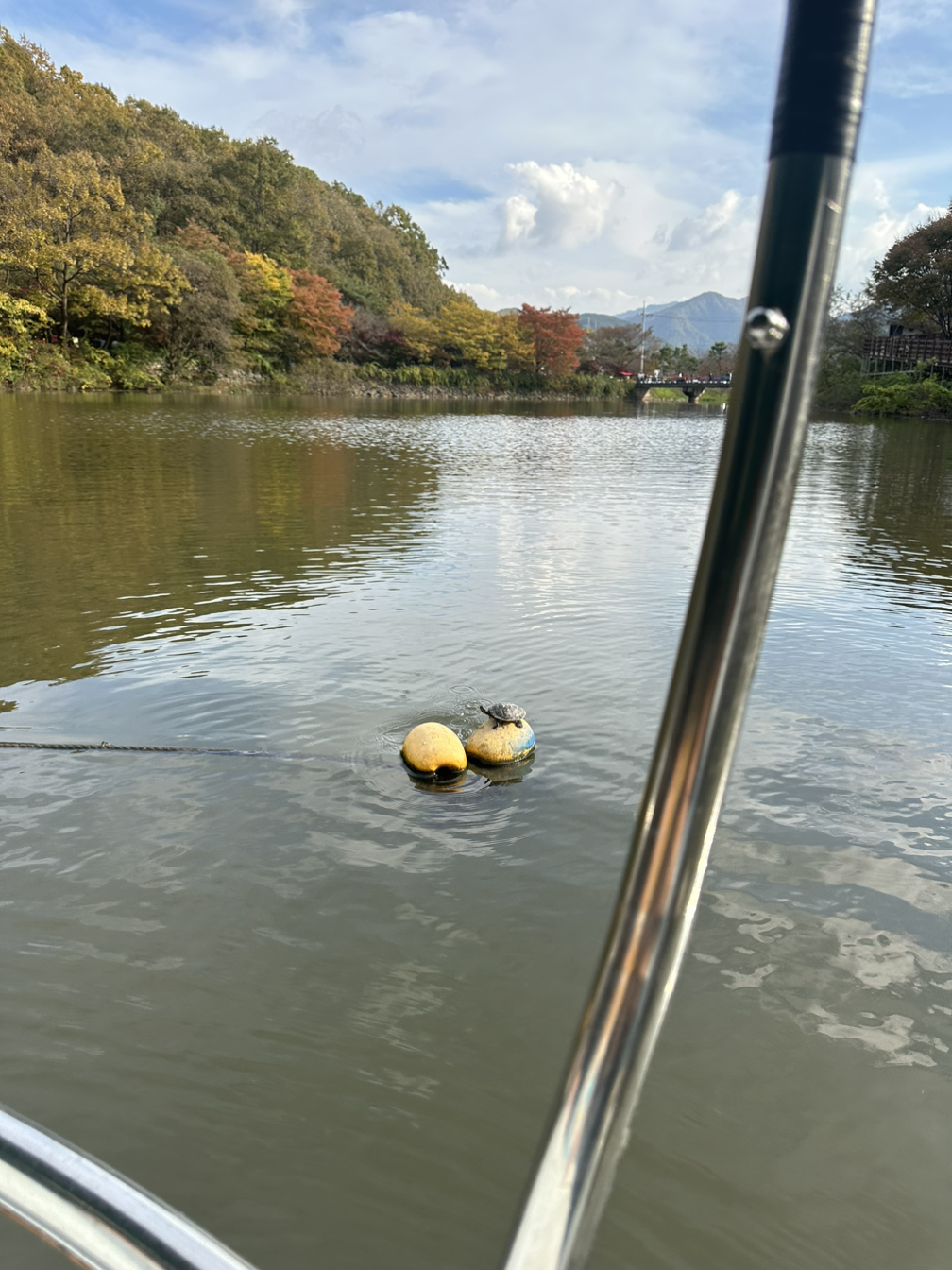 호수가 있는 곳에 가면 반드시 오리배를 탄다. 20대엔 이것의 존재를 이해하지 못했다. 그런데 한번 타고나서부턴 어른들이 타는 이유를 알게 됐다. 오리모양의 조잡한 페달이 달린 배에서 열심히 발을 굴러서 삼십 분을 함께 있는다. 30분의 시간을 일, 이만 원으로 빌려서 인공 호수에 떠 있는 것이다. 이게 정말 효율적인가 하는 생각을 할 수 있다. 하지만, 유원지마다 호수마다 존재하는 오리배는 분명 이유가 있다. 함께한 그날의 기억 속엔 오리배는 절대로 잊혀지지 않는다. 너와 나를 우리로 만든다. 둘의 시간을 하나로 만드는 마법 같은 공간. 입곡군립공원은 무빙보트라고 해서 발구르기가 필요 없다. 올 때마다 웨이팅을 해서 탄다.
