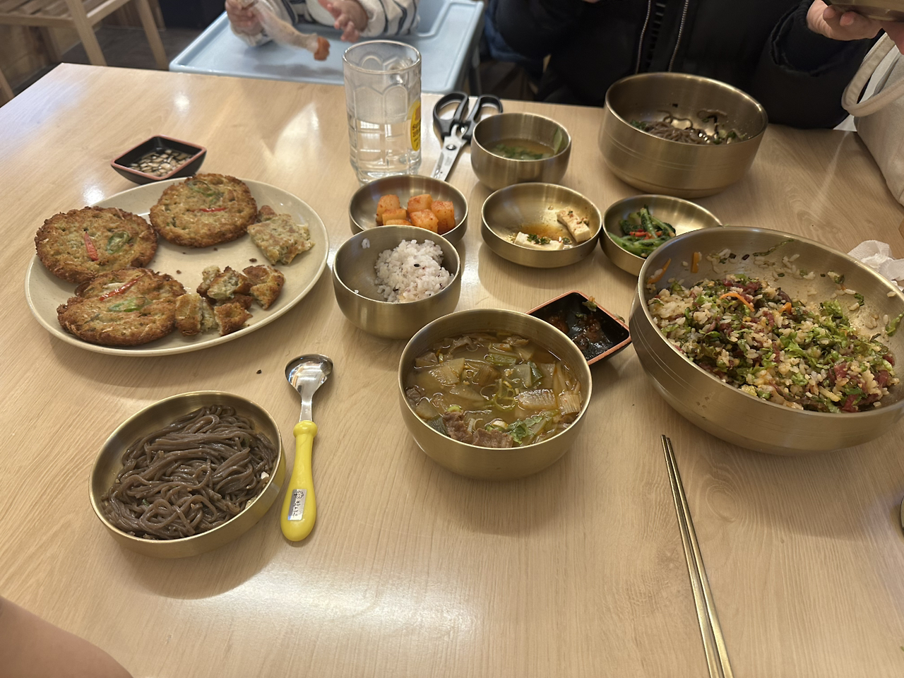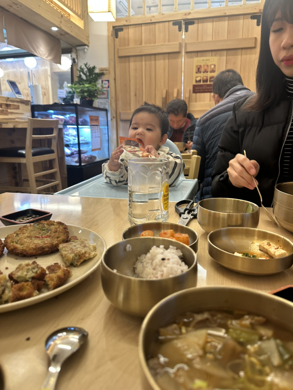 영남루 옆에 있는 아리랑 시장에서 점심을 먹었다. 한우국밥과 육회 비빔밥을 파는 영남정은 맛도 가격도 나쁘지 않다. 아이가 먹기엔 한우국밥이 매워서 들기름막국수를 시켰는데, 우리 가족의 입맛엔 맞지 않았다. 시장 꽈배기는 언제나 행복을 준다. 이렇게 좋아할 줄이야.