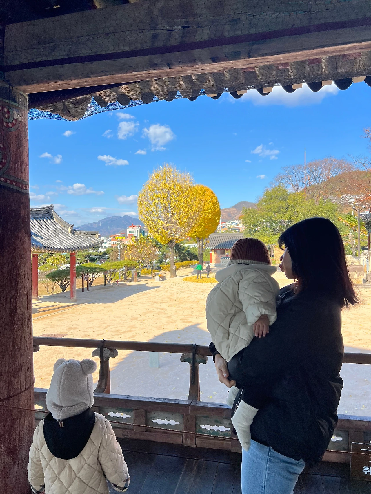 지난 입곡군립공원에선 기대했던 단풍과 은행나무잎이 많지 않았다. 최근 경남을 제외한 우리나라는 눈으로 뒤덮였고, 부산은 눈은커녕 화창한 날만 보인다. 날이 더 추워지기 전에 마지막 가을 나들이를 가기로 결심했다. 검색을 해서 우리가 갈만한 곳을 찾았다. 바로 영남루다. 부산에서 한 시간 거리에 있지만, 언제나 대동톨게이트는 막힌다. 덕분에 아들들은 낮잠도 자고 아내가 좋아하는 지드래곤 노래도 실컷 들었다.