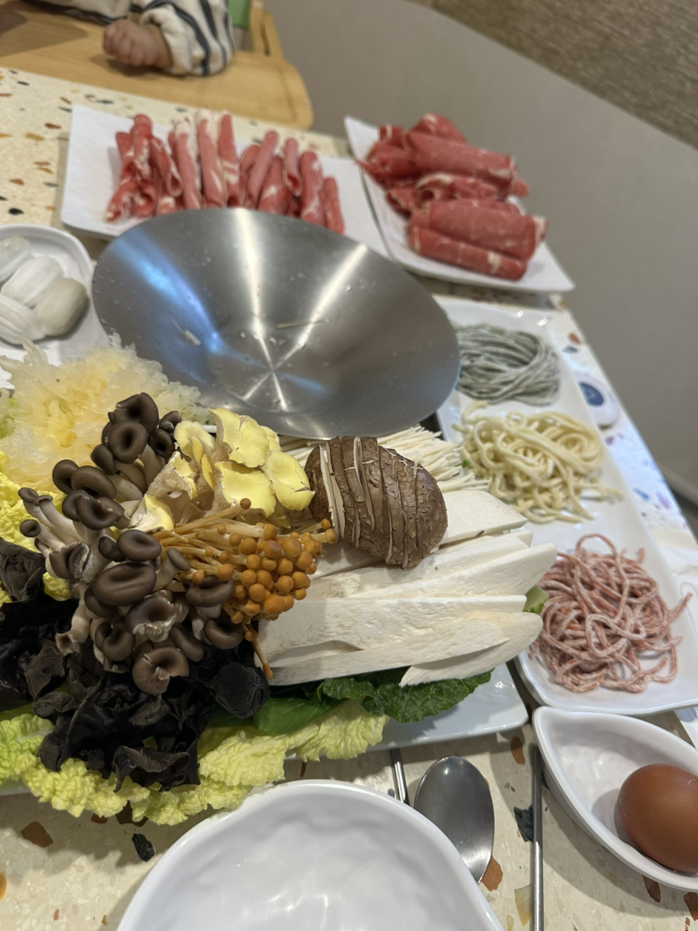 다이소에서 물건을 사고 이원가 샤브칼국수로 향했다. 버섯을 가득 주는 샤브샤브 집이다. 2인분에 고기를 추가했다. 칼국수와 볶음밥을 제공해 주지만, 우리 가족처럼 고기를 즐기는 사람들에겐 아쉽다. 고기를 추가해도 부족했으니. 그래도 샤브샤브는 언제나 옳다. 버섯을 좋아하는 나에겐 최고의 공간. 공간이 나눠져 있어서 나름 프라이빗하게 즐길 수도 있다.