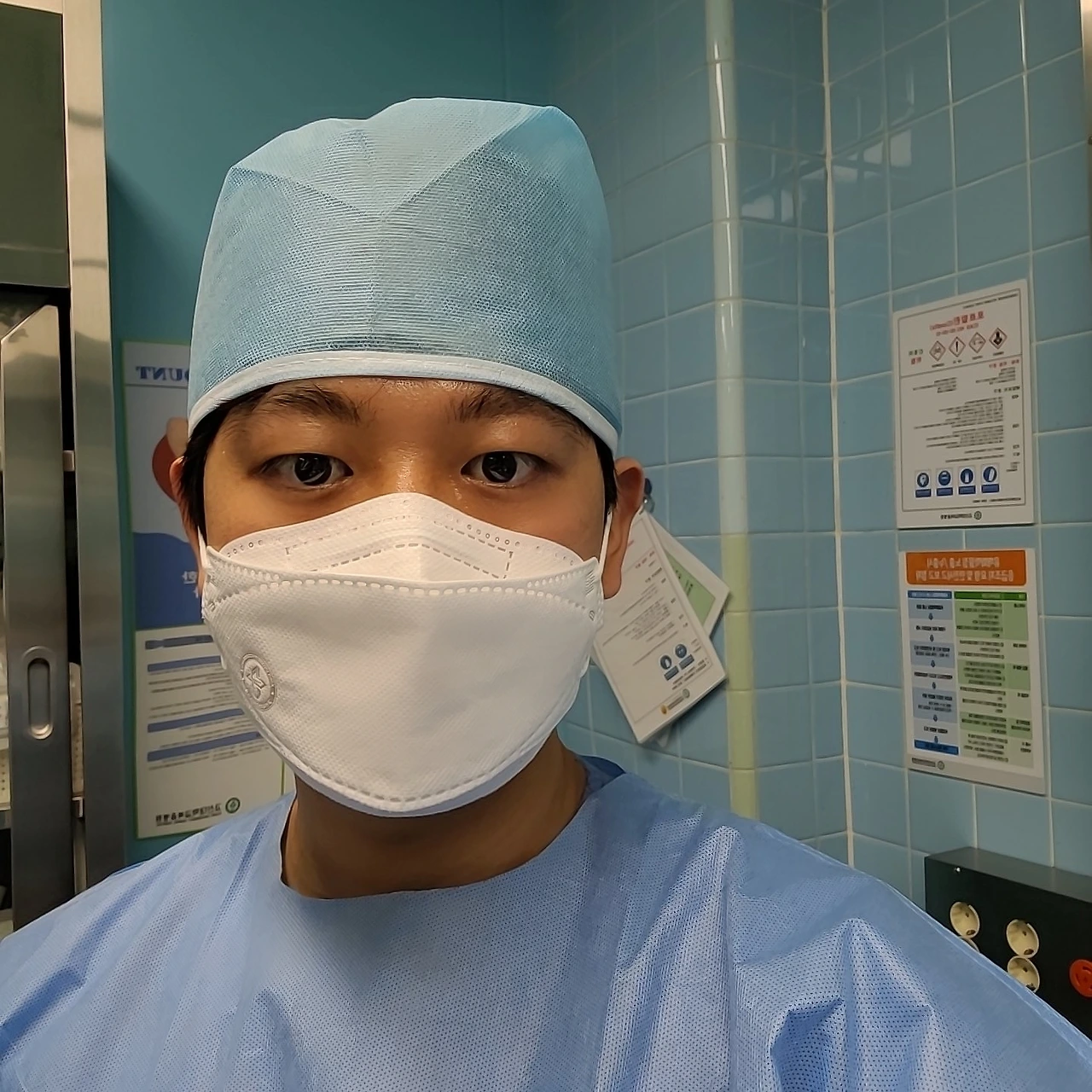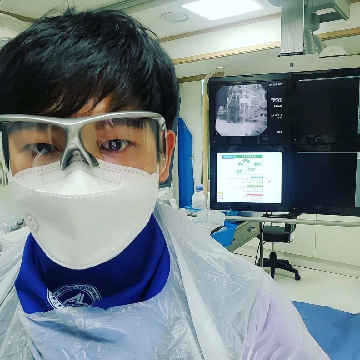 일이 끝나고 마칠 시간이 돌아올 쯤이면 내 얼굴은 말이 아니게 된다. 아침보다 생기는 줄었고 얼굴은 기름으로 번들 번들 하다. 장갑 낀 내 손은 땀으로 불어서 목욕탕을 다녀온 것처럼 쭈글쭈글하고 머리는 떡져서 서로를 움켜잡은 듯이 한 뭉텅이로 되어있다. 직장 내에서 셀카를 찍는 것은 나에게 새로운 의미를 주고 있다. 이곳에서 일하는 순간을 기록하기도 하고 다이어트를 하고 있는 내 상태도 점검 할 수 있다. 특히 오늘 같이 긴급한 시술을 하거나 위험한 시술을 했을 때, 더 초췌해지고 멍해 있는 내 모습을 보는 재미가 있다.