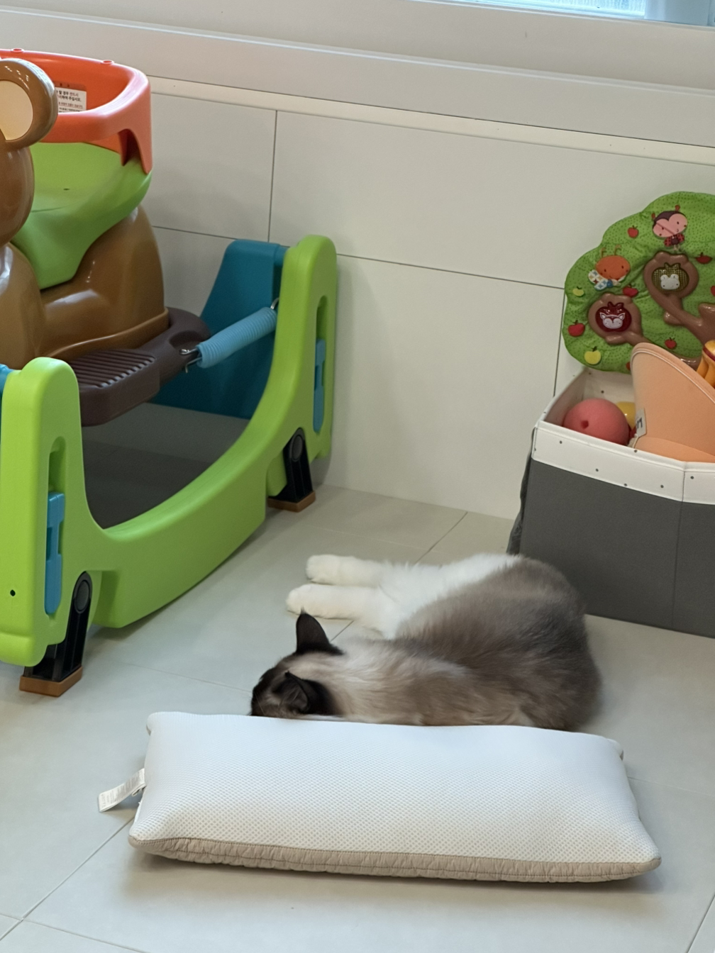 2년 전쯤, 시우가 거실에 막아둔 가림막을 지나서 화장실에 기어 들어갔던 적이 있다. 평소보다 높고 큰 목소리로 울던 토리. 토리는 목놓아서 야옹거리고 대답이 없자 내가 있는 곳으로 와서 나를 다시 불렀다. 시우가 위험할 까봐 토리는 나를 부른 것이다. 토리는 우리 부부와 함께 육아를 하고 있다. 우리 가족의 육아 파트너. 첫째 아들 토리. 지금처럼 우리랑 영원히 함께 하길.