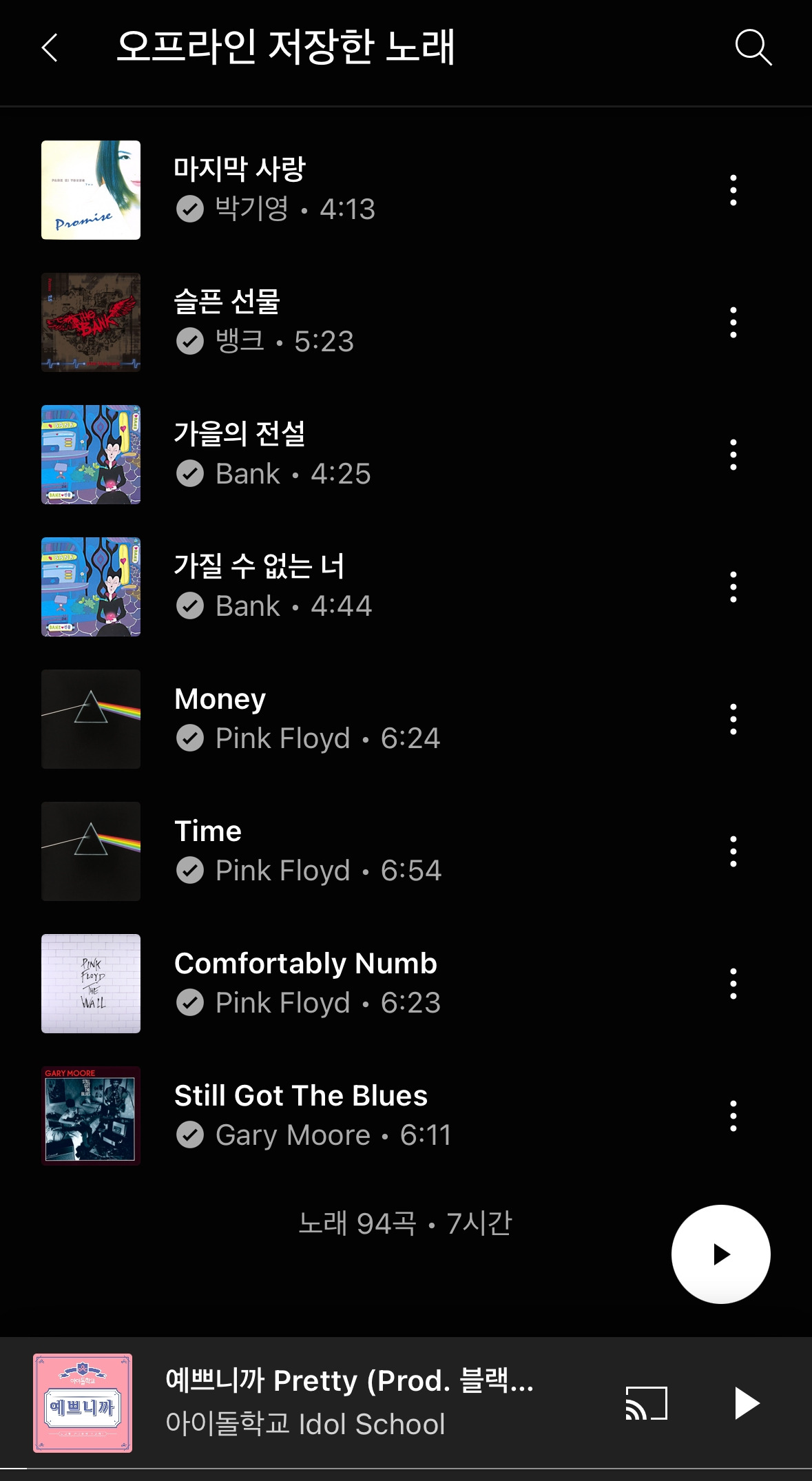 유튜브 뮤직에서 오프라인에 저장되어 있는 첫 번째 곡이다. 진득한 기타 솔로가 좋은 곡이다. 블루스락 기타의 매력과 속주의 맛도 있는 명곡. 그가 갑자기 사망했다는 소식을 듣고 망연 자실 했었다. 내가 좋아하는 아티스트와 영웅들이 죽기 전에 공연장에 가야 하는데. 데이비드 길모어가 죽기 전에 공연을 봐야 하는데 … 사실 핑크플로이드만큼 게리무어를 좋아하진 않았다.