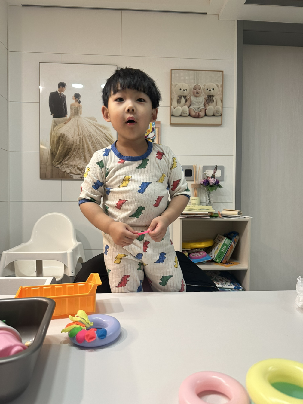 아들은 잠이 올 때면 엄마를 찾는다. 어딘가에 부딪치거나 아플 때에도 엄마를 찾는다. 나는 함께 노는 친구 같은 존재지만, 엄마는 자신에게 반드시 필요한 존재다. 유튜브 보기, 간식 먹기, 편백놀이, 모래놀이 등 엄마의 허락을 받아야 가능한 것들이 제법 있다. 아들에겐 엄마는 휴식처이자 안전한 집이고 나는 놀이터와 같다. 놀다가 결국 집에 들어가야 하는 것처럼, 우리 아들에겐 엄마가 제일 소중하다. 나는 지금처럼 같은 자리에서 아들과 함께 할 것이다. 친구처럼, 함께 엄마랑 혼나기도 하면서 우리는 가까워지겠지?