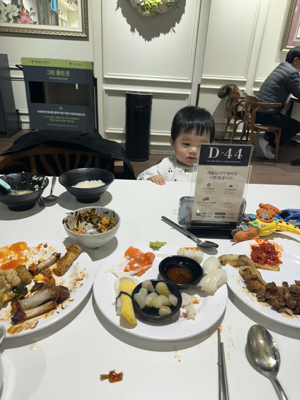 백화점에 있는 애슐리에 갔다. 뷔페라서 아이들을 위한 것도 많지만, 이제는 음식이 서빙되거나 완제품인(?) 곳을 선호하게 된다. 둘째가 사고를 치기 시작하기 때문에, 고기를 굽거나 조리를 해야 하는 경우에는 케어하기 힘들어진다. 같은 엄마 뱃속에서 나와도, 첫째와 둘째는 다르다. 외모도 성격도 행동 하나하나도. 접시를 치워주는 로봇 구경을 하며 아들들과 밥을 먹었다.