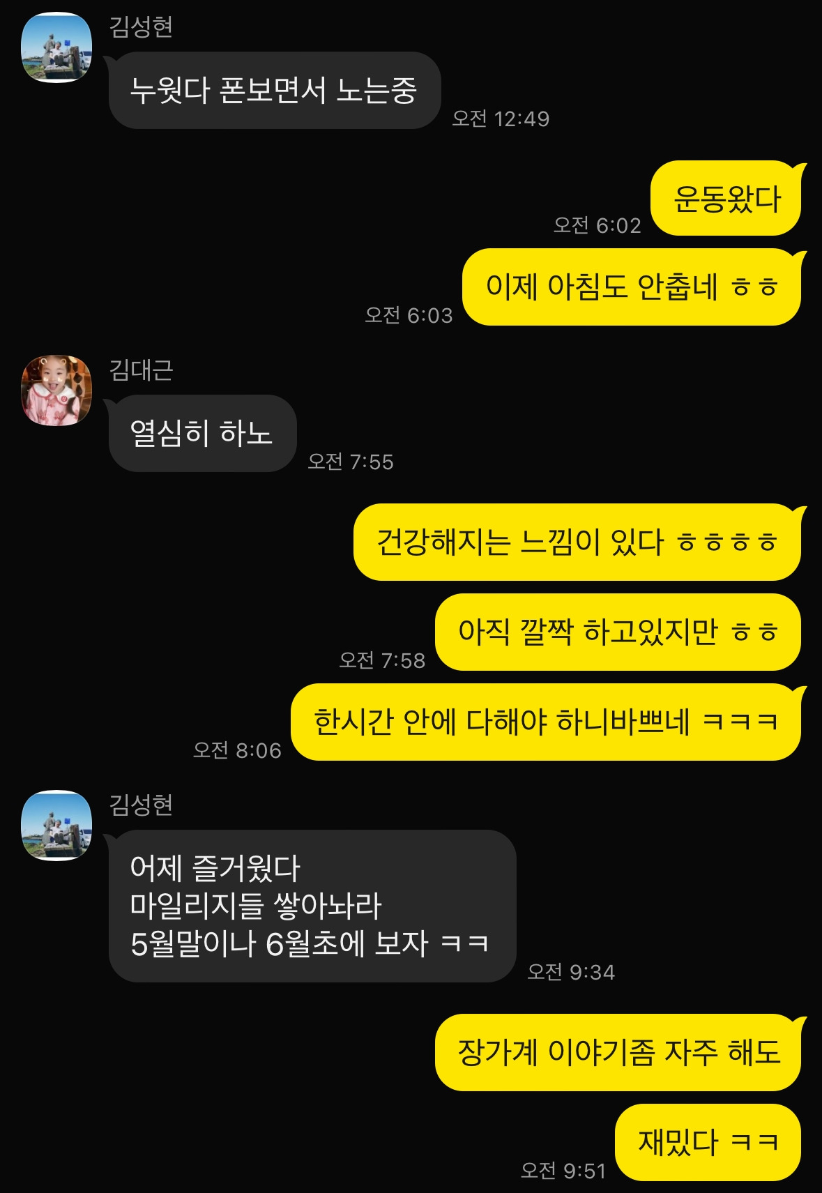 군대 가기 전까지 1년 동안 하루도 빠짐없이 함께 놀았다. 피시방도 가고 농구도 하고, 내가 알바를 하면 그 돈으로 셋이서 고기도 사 먹고 술도 마셨다. 덕분에 친구들을 만나면 돈을 잘 내지 않는다. 일 년간 먹여 살렸기 때문이라나? 현재는 발전소를 다니는 친구가 연봉이 가장 많고 총각(?)이기 때문에 대부분 부담을 한다. 애 아빠들은 아껴야 한다며 한사코 계산을 한다. 예전에는 엄두도 못 낼 식당에 가고 고기도 사 먹지만, 그땐 아니었다.