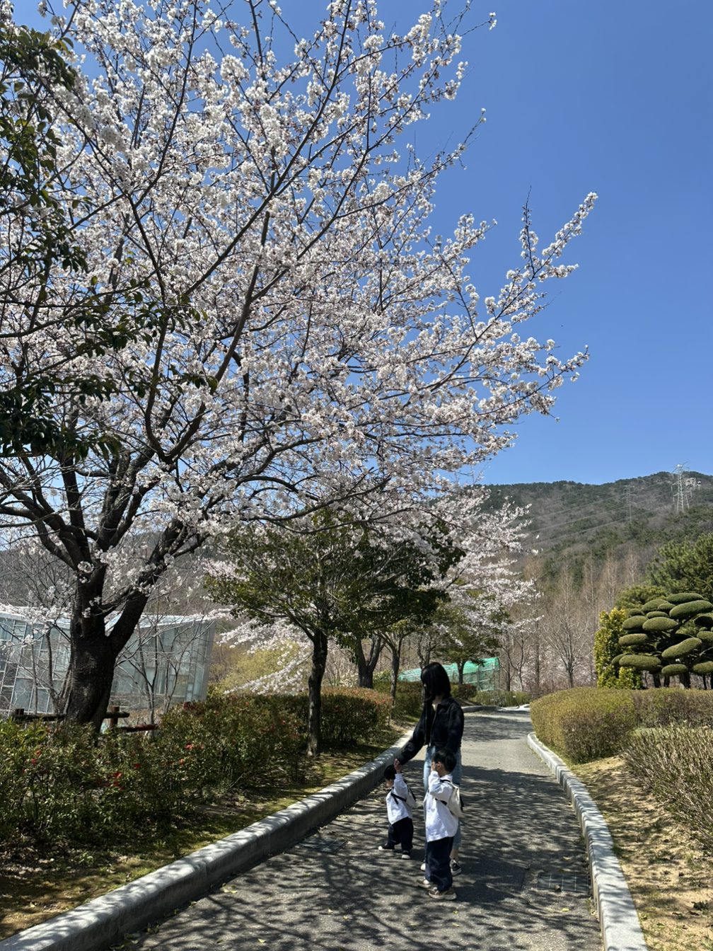 날은 맑고, 벚꽃이 만개하니 나들이를 가는 인파로 가득하다. 삼락체육공원, 광안리 삼익비치, 달맞이 고개 등등. 많은 곳을 뒤로하고 우리는 화명수목원으로 향한다. 주말에는 많은 내원객들로 주차가 힘들지만 오히려 벚꽃으로 유명한 곳은 아니기에, 수월하게 주차를 할 수 있었다.